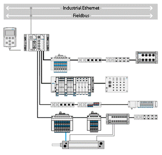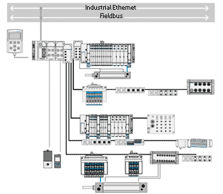 使用長度很短的氣管將個別功能連接到小型閥島上。此類安裝系統(tǒng)使用用于數(shù)據(jù)和電壓的混合電纜將最多16個模塊連接到集中式現(xiàn)場總線節(jié)點上,從而減少了安裝工作量。