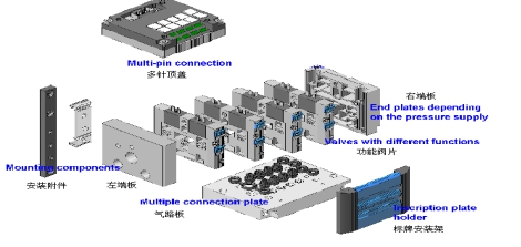 左右端板的作用是固定功能閥片,同時根據(jù)需要可以選擇閥島的供氣方式,可以選擇從一端供氣或兩端同時供氣。