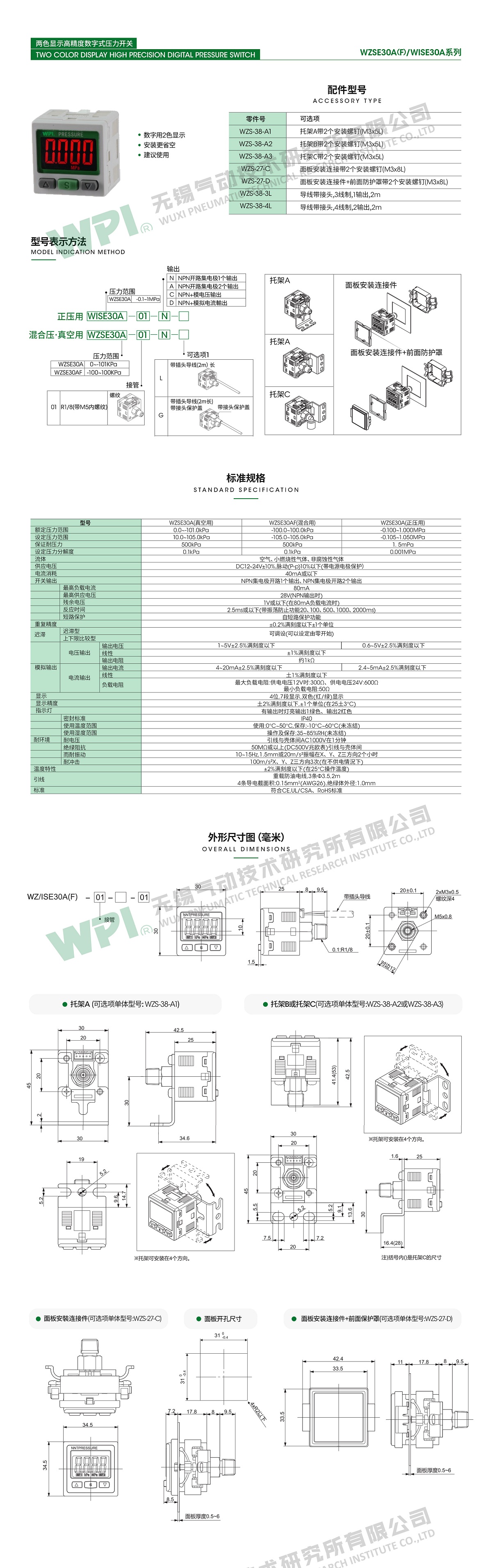 兩色顯示WZSE30A系列 高精度數字式壓力開關
