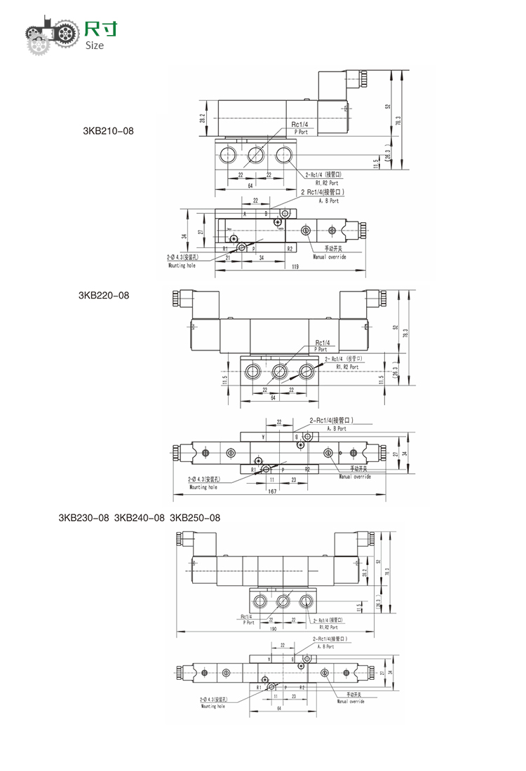 3KB2系列 先導式5通電磁閥/板接式