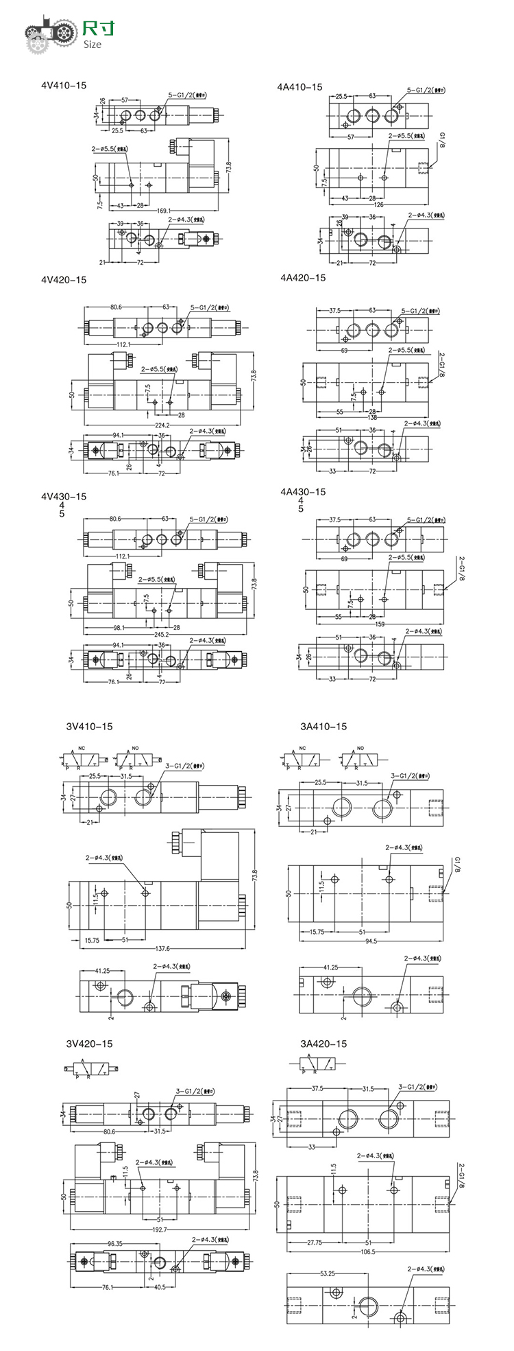 4V400系列 先導式3通5通電磁閥、氣控閥
